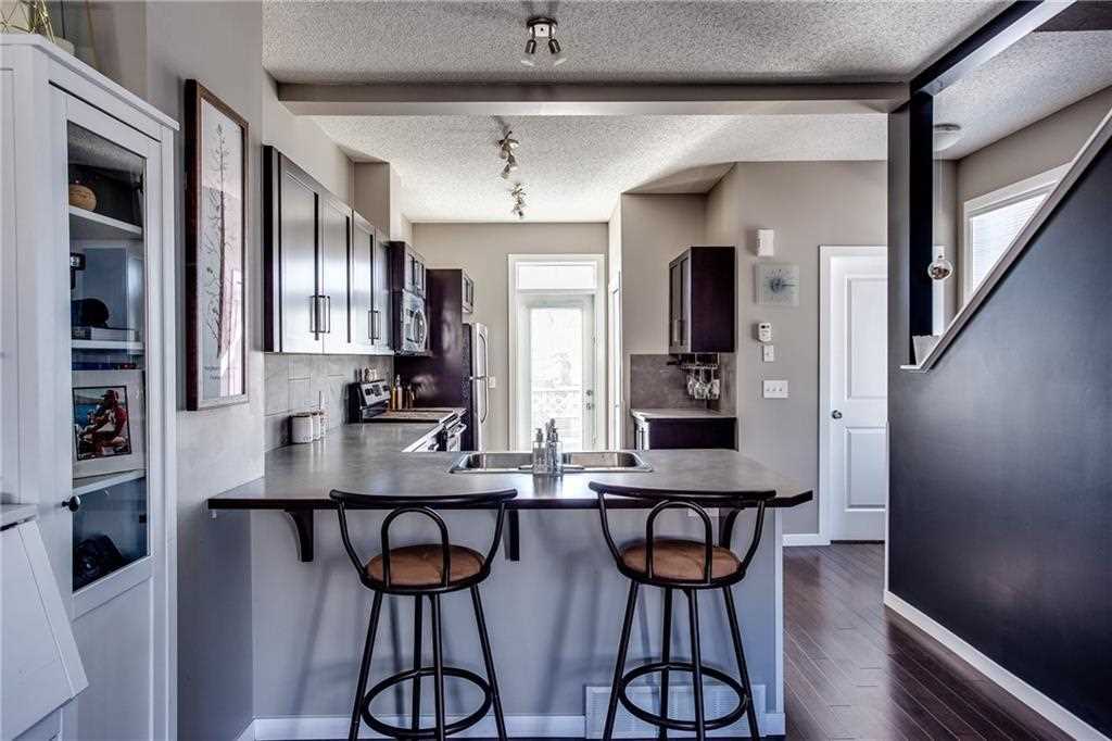 inside. The fact that this Townhouse is a corner unit so you only have one neighbor is a bonus, but because it is a corner unit you get extra windows to let all the sunshine in. You can enjoy the balcony for your BBQ or your patio to sit and enjoy a tea or glass of wine. The tandem double garage for both cars, storage and yes the not so fresh smelling hockey equipment. Now the necessities, 4 piece ensuite, top floor laundry, Xlarge Kitchen, bar counter for stools, separate eating area, gorgeous living room with extra windows filling the room with light and walking distance to shopping and restaurants. It is perfect for what you need and a price that is