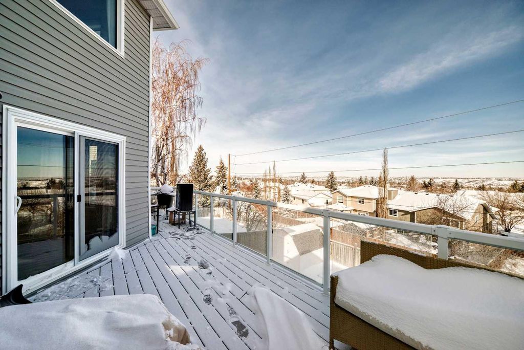 Welcome to this stunning two-storey home in the highly desirable McEwan Glen, tucked away on a quiet cul-de-sac with unobstructed city views stretching for miles. Boasting over 2,100 sq. ft. above grade, the home features four generous bedrooms upstairs and a fully developed walkout basement with a fifth bedroom and full bathroom with walk-in shower "” perfect for guests, teens, or extended family. The main floor impresses with a cathedral ceiling in the living room, a cozy fireplace in the family room, and large upgraded windows that capture the spectacular skyline. The renovated kitchen is a chef's dream, complete with the largest granite island you will want for yourself"” ideal for cooking, entertaining, or gathering friends and family. Newer flooring, fresh paint, and updated windows bring a modern, move-in-ready feel throughout the home. Recent upgrades include a new furnace, new roof, two new hot water tanks, renovated bathrooms, windows , outside siding, fridge, stove and dishwasher, patio doors main floor flooring, and a maintenance-free deck "” all designed for comfort and low upkeep. The double attached garage and quiet cul-de-sac location provide convenience and privacy. With incredible views, smart upgrades, and a layout built for everyday living, this home is a rare find in Calgary's northwest. If the view doesn't wow you the house will.