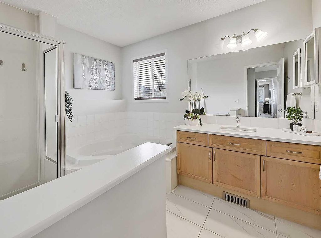 *OPEN HOUSE SUNDAY APRIL 12, 1:00-3:00pm* Here's your incredible opportunity to own a rare gem in this sought-after NW community: An AIR-CONDITIONED fully finished 2-storey home with LEGAL, PERMITTED, BASEMENT SUITE - Complete with separate SIDE ENTRANCE! Nestled into one of the quiet cul-de-sacs of the community, this home has been lovingly updated & renovated. Step inside off the front porch & you're first greeted with a den perfect for anyone working from home or needing a dedicated work space. Continue on and the home opens up to reveal a spacious living area complete w/dining room & totally filled with BRIGHT NATURAL LIGHT thanks to its ideal SW exposure. A cozy natural-gas fireplace is a wonderful treat for those cold winter days. Flowing throughout you'll notice the quality vinyl plank flooring installed only a few years ago, offering years of resilient wear & beautiful modern neutral tones. The kitchen gives views to the backyard & has been updated with quartz countertops, a suite of stainless steel appliances & contemporary navy blue lower cabinets. The sink is located below the peninsula eating bar that looks out over the living room. Take a step outside through the sliding glass door and you'll find a huge 16x17 deck, beckoning for days spent lounging in the sun & cooking steaks on the BBQ. The backyard just beyond is a gardener's dream come true offering all the sunlight every plant could need, & endless growing potential! Upstairs a generous bonus room awaits, giving a reprieve from the direct sun & an ideal place for movie nights or to curl up with a good book. The primary bedroom is found at the back of the home, giving full views of the backyard & letting in more of that wonderful south sun. It's complimented with a walk-in closet plus a renovated 4-pc ensuite oasis feat. a separate shower, deep corner soaker tub, & quartz countertop w/undermount sink. Finishing this upper level are two additional bedrooms, a shared (and also renovated) 4-pc bathroom w/matching quartz counter, undermount sink, & an actual laundry room w/side-by-side washer/dryer and shelving. Head back downstairs, and halfway you'll notice a secured SIDE ENTRANCE offering private access to the LEGAL basement SUITE below. Ideal as a mortgage-helper in a part of the city with so few options like it, & completed just over a year ago, this wonderful QUALITY-built space features of a FULL kitchen w/quartz counters & dishwasher along with a new 3pc bathroom to match. Separate stacked laundry is also found in the bathroom further ensuring minimal interaction with the suite tenants. Two additional rooms complete this lower level and can either be used as 1 or 2 bedrooms or living spaces as needed. Located only a short walk to the Tuscany LRT station, & a short drive to the Royal Oak shopping centre and YMCA , Royal Oak also has it's own Elementary and High Schools, along with quick access to Stoney and Crowchild Trail. Stop by to see this unique opportunity while you can!