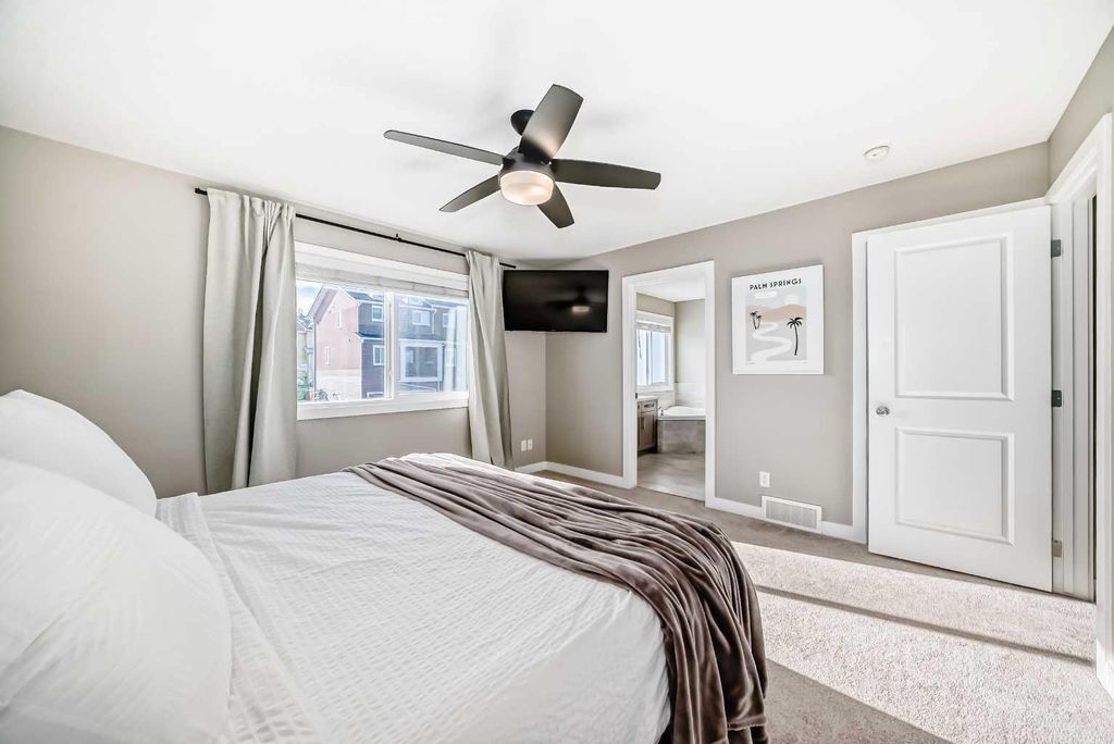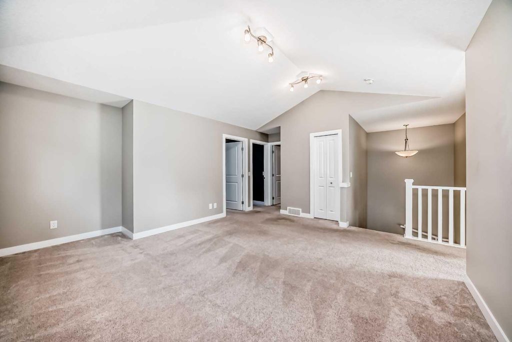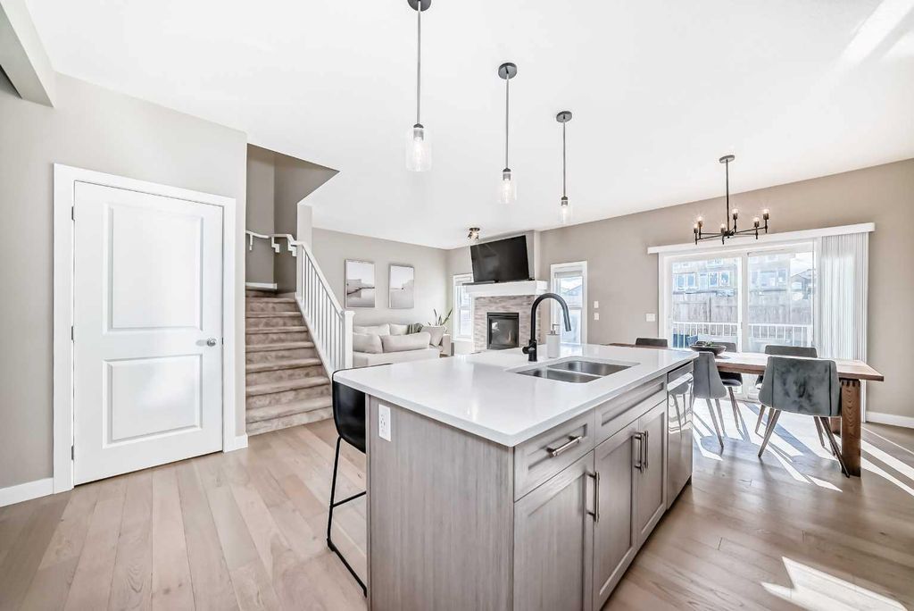 Welcome to 215 KINNIBURGH ROAD! Over 2300 sq ft of living space! Truly move-in ready, this well maintained four bedroom, 2.5 bath home offers a bright, open layout and great curb appeal with its double attached garage and inviting front entrance. Step inside to a sunlit main floor where the kitchen stands out with quartz countertops, a large island, pantry, stainless steel appliances, and modern finishes, all opening into the dining area and comfortable living room featuring a mantled gas fireplace and stone surround. Main floor laundry and a convenient two piece powder room complete this level. Upstairs, you'll find a spacious bonus room with a vaulted ceiling, along with three good sized bedrooms. The primary suite offers plenty of space, a walk in closet, and a private ensuite with an oversized shower and soaker tub, while the additional bedrooms share a full four piece bath. The basement adds even more usable space with a large rec room, bedroom and includes a roughed-in bathroom, ready for future development. Outside, the west facing backyard is fully fenced and features a raised deck, fire pit area, plus a gas line for your BBQ. Ideally located within walking distance to East Lake School, shops, and amenities. Book your showing today!